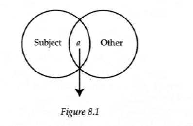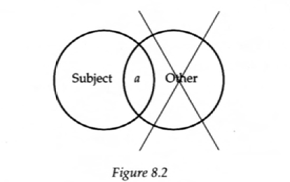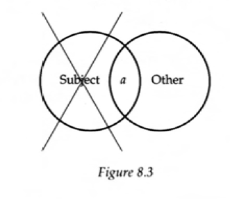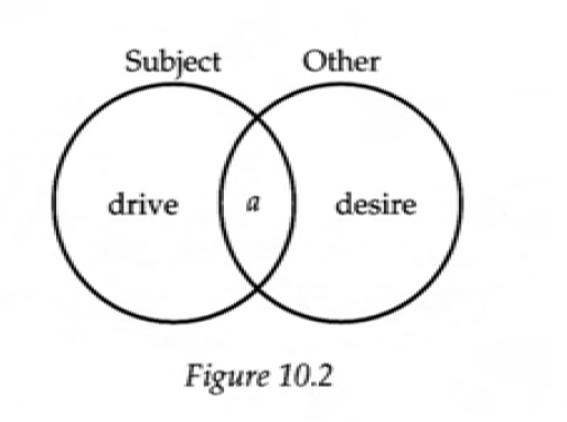 欲望在大他者的一侧,而主体是一种欲望物(das Ding),其中交集即主体被象征化了的部分: