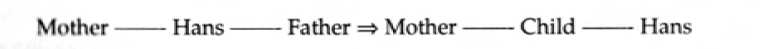 于是hans创建了一个新的血统——一个新的家谱,在这个家谱中他娶了自己的母亲、他的父亲也同时娶了自己的母亲。在第四个研讨班结束时,hans被诊断为性倒错,而不是弗洛伊德所认为的神经症。
