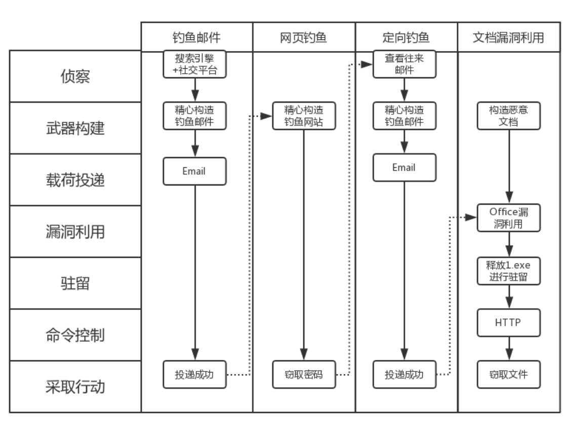 - 战略/战术:包含目标群体、攻击入口和载荷投递方式和释放流程。攻击入口、载荷投递方式和释放流程可以在样本分析中进行总结。
